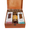 Zestaw umieszczony w oryginalnej, ażurowej, drewnianej skrzyni.